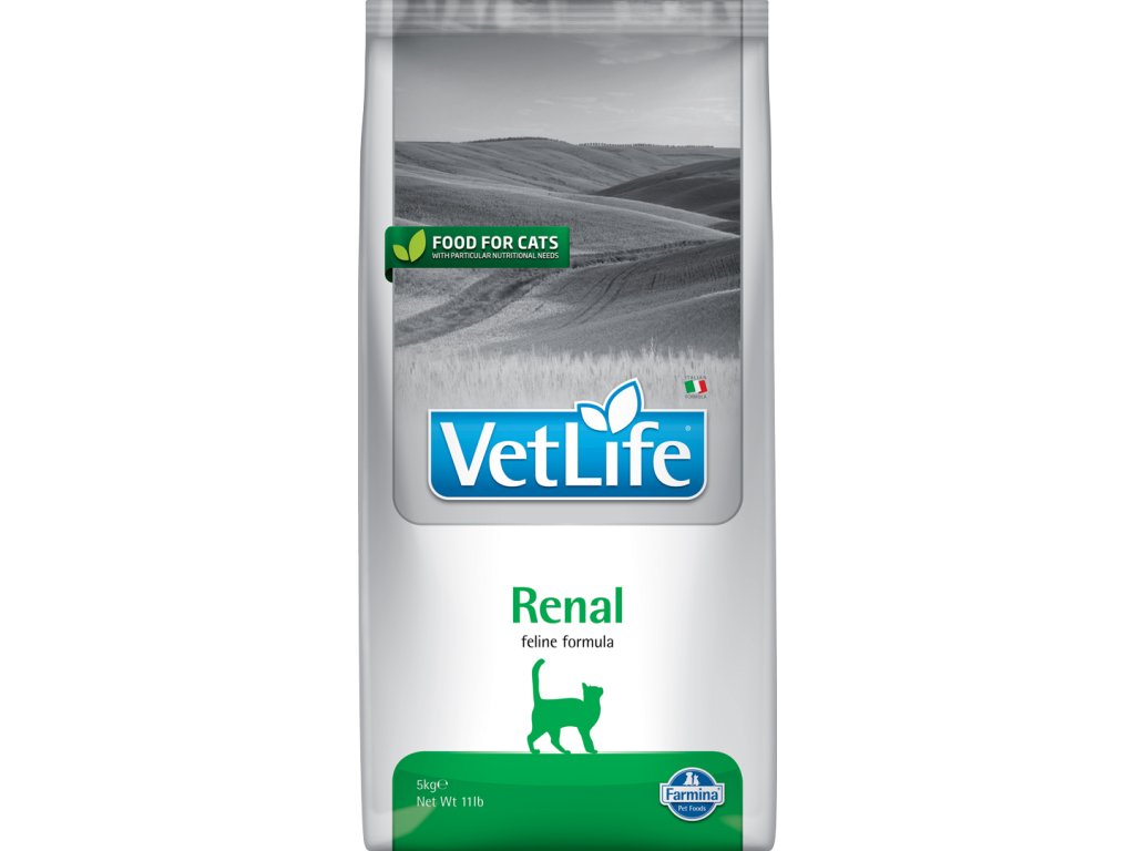 Farmina Vet Life Renal je kompletná veterinárna diéta pre mačky na podporu funkcie obličiek v prípadoch akútneho alebo chronického renálneho zlyhania.