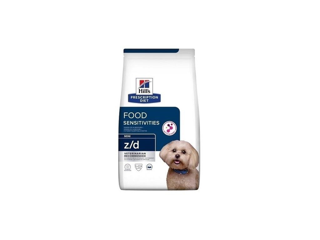 Hill's PRESCRIPTION DIET z/d krmivo pre psy trpasličích plemien je kompletné diétne krmivo, ktoré sa používa na zníženie neznášanlivosti prídavných látok a živín u dospelých psov. Toto diétne krmivo obsahuje vybraný zdroj sacharidov a hydrolyzovaný zdroj bielkovín.