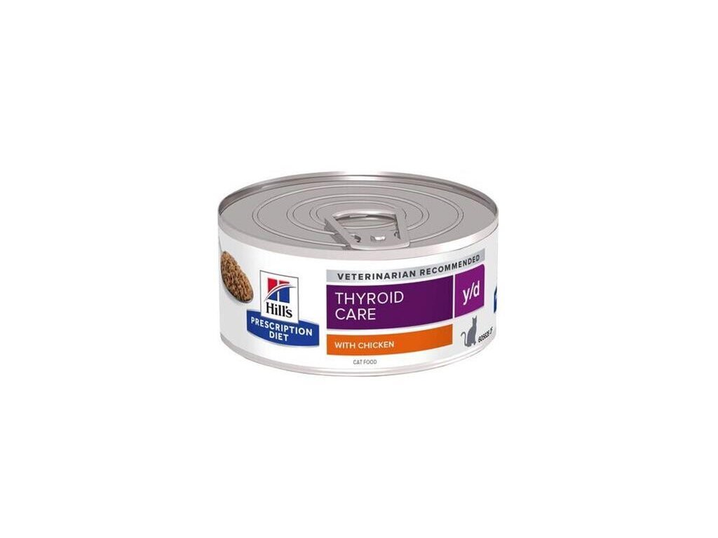 Hill's PRESCRIPTION DIET y/d krmivo pre mačky s kuracím mäsom je kompletné diétne krmivo na zníženie obsahu jódu v krmive v prípade hypertyreózy u dospelých mačiek. Toto krmivo obsahuje obmedzené množstvo jódu.